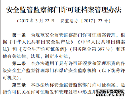 安全監(jiān)管監(jiān)察部門許可證檔案管理辦法