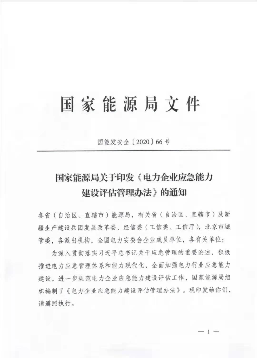 國家能源局印發(fā)《電力企業(yè)應(yīng)急能力建設(shè)評估管理辦法》