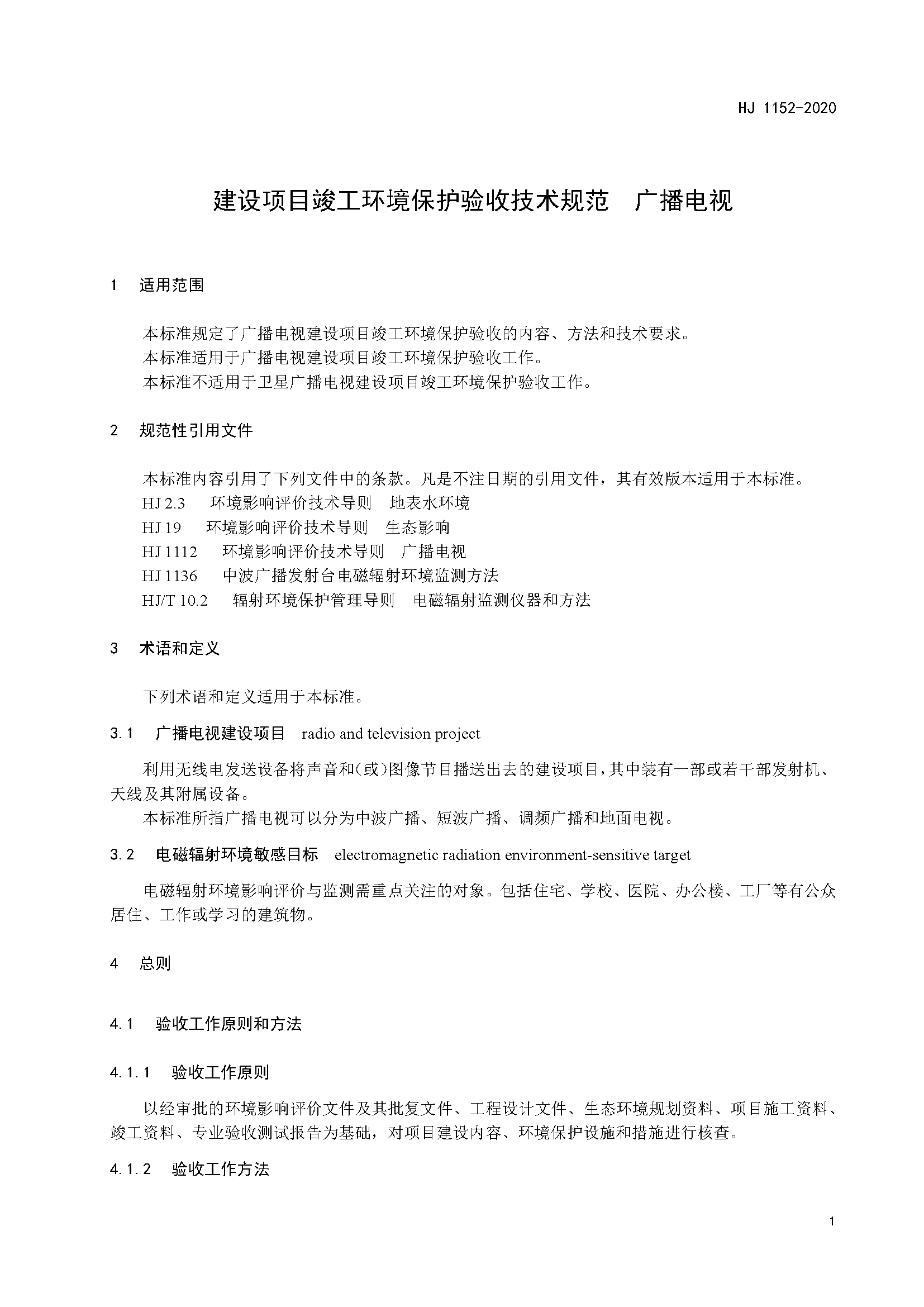四、《建設(shè)項(xiàng)目竣工環(huán)境保護(hù)驗(yàn)收技術(shù)規(guī)范 廣播電視》(HJ 1152-2020)