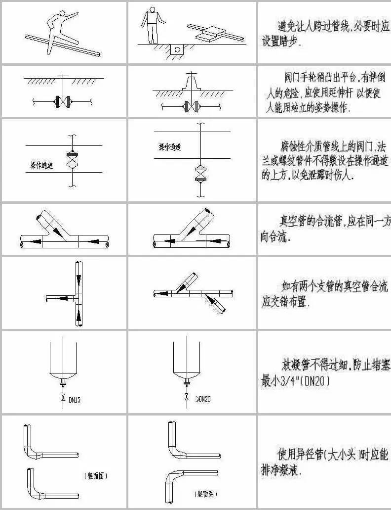 計中經(jīng)常由于設(shè)計人員的疏忽及經(jīng)驗不足,會造成管道布置不合理,操作檢修不便,外表不美觀的情況。為提高設(shè)計質(zhì)量,減少常識性錯誤的發(fā)生,本文為大家整理了配管設(shè)計中這些最常見的實例!
