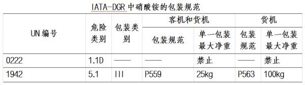 UN編號(hào)1942的硝酸銨在空運(yùn)時(shí),對(duì)照IATA-DGR技術(shù)規(guī)定,可選擇客貨機(jī)和純貨機(jī)兩種方式。當(dāng)用客貨機(jī)運(yùn)輸時(shí),不允許單一包