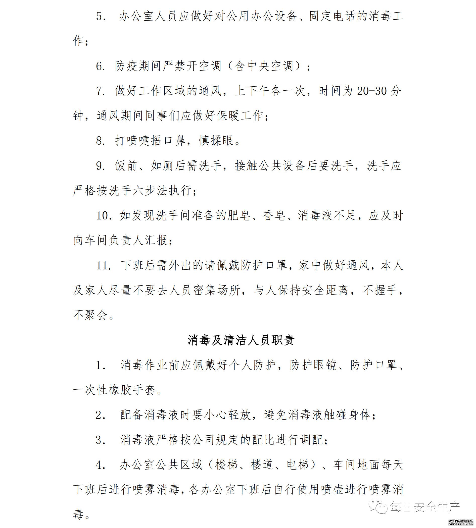 ② 堅持每日上班前、下班后消殺防疫(人員集中的重點區(qū)域應(yīng)多次消殺);
