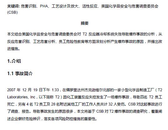 CSB典型事故案例分析—T2反應(yīng)器冷卻失效爆炸事故給我們的啟示
