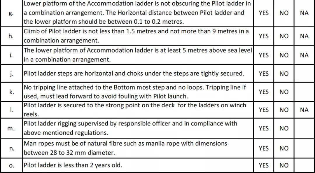 ·在抵達南澳大利亞港口之前,所有船長都應(yīng)填寫隨附的引航梯固定和登船安排清單。