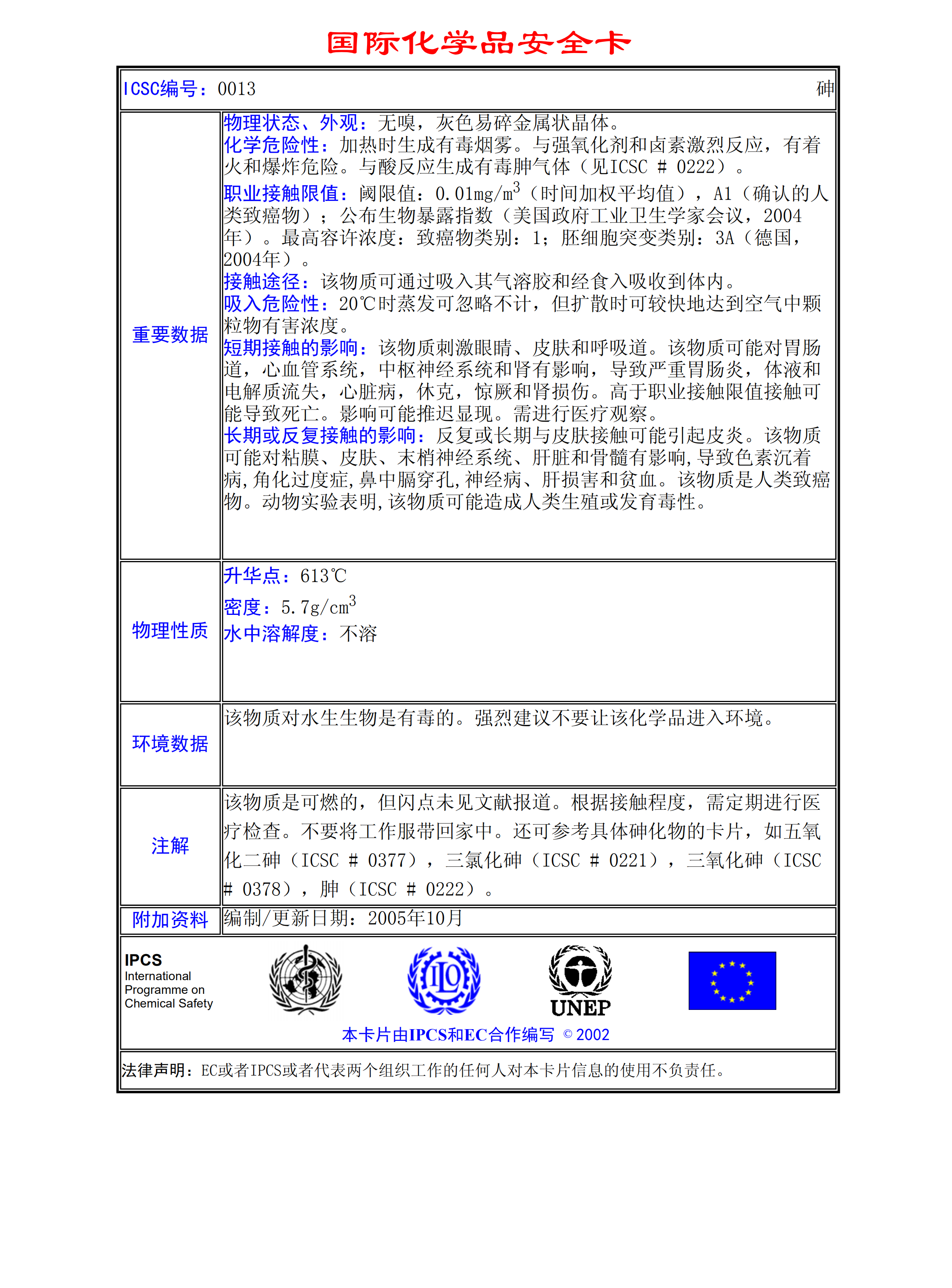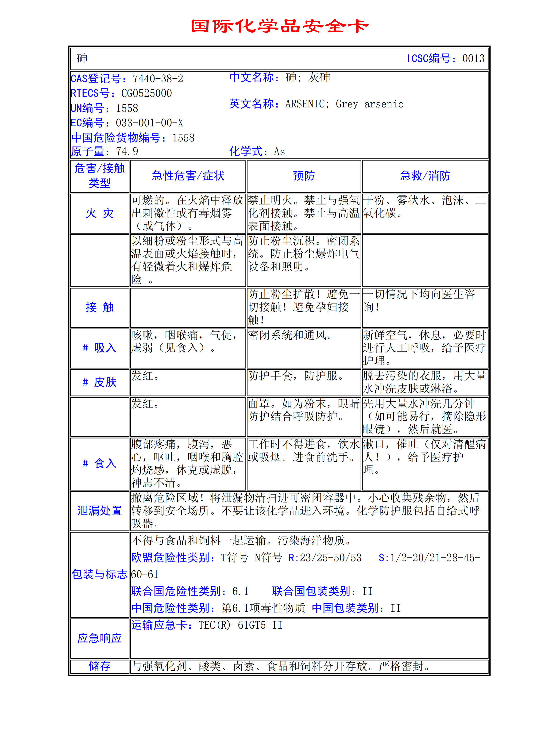 砷MSDS