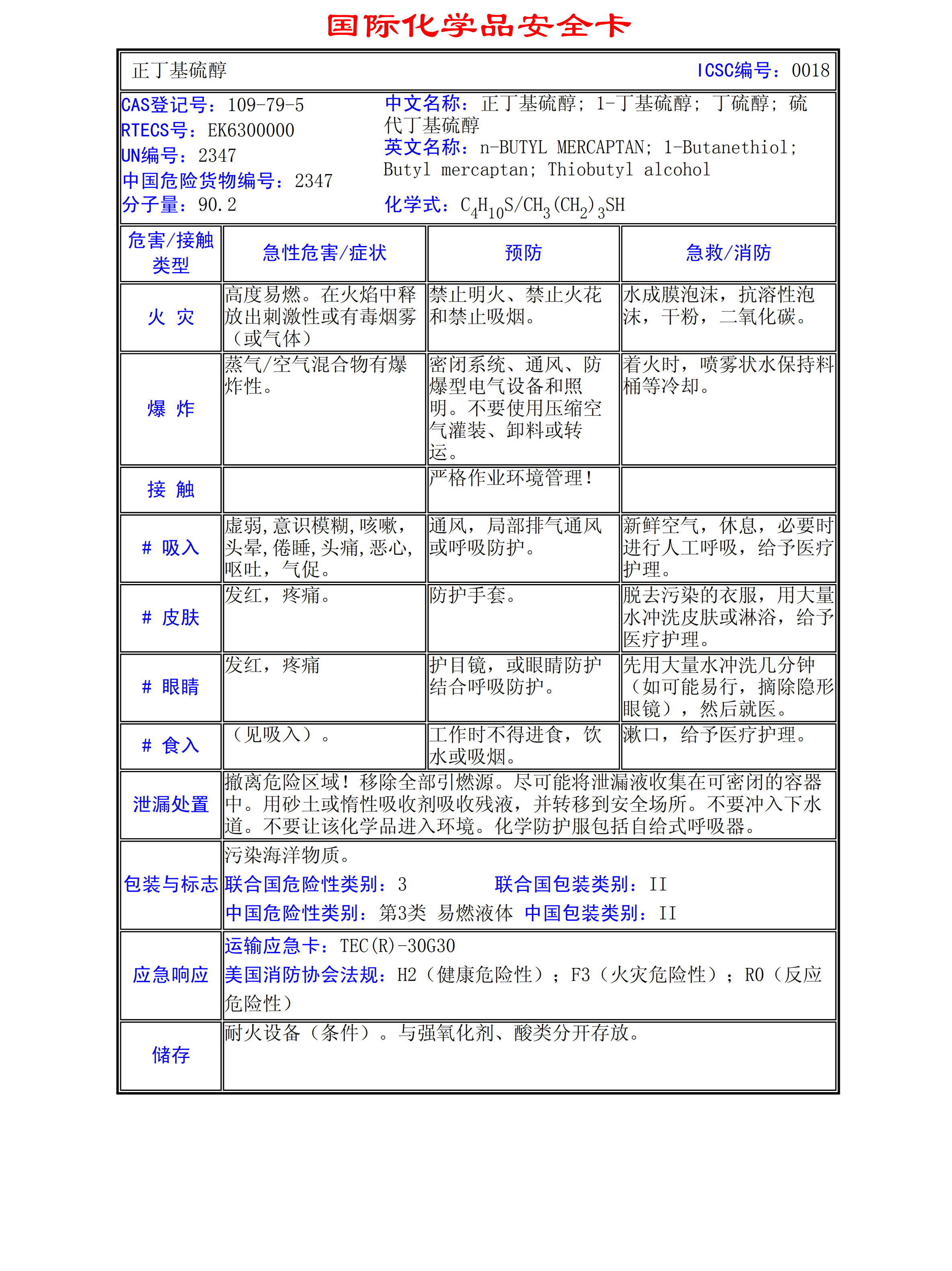 正丁基硫醇MSDS