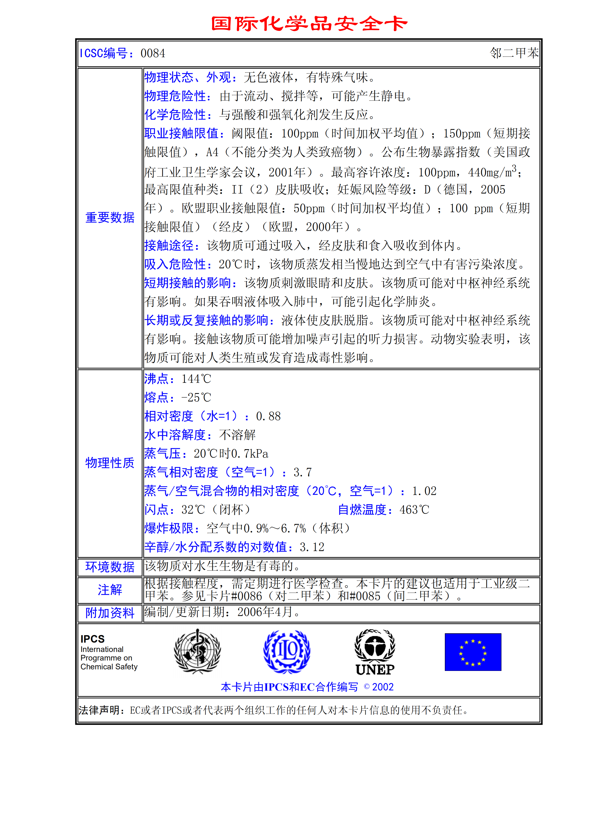 鄰二甲苯MSDS