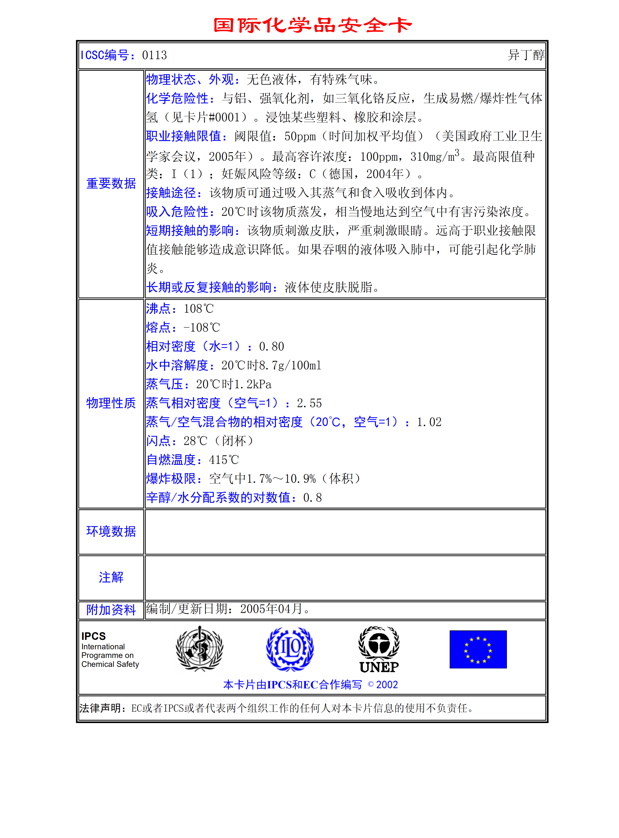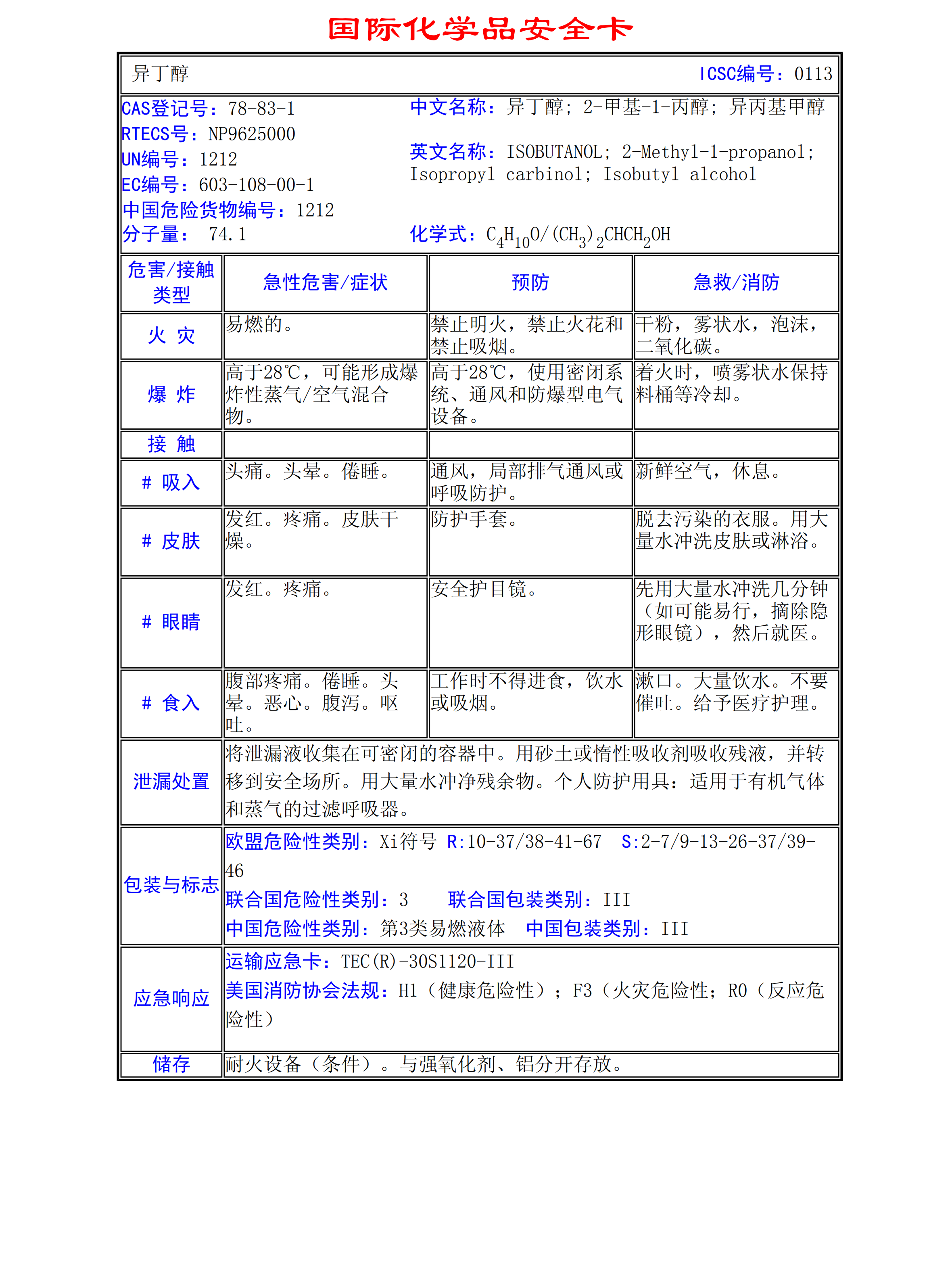 異丁醇MSDS
