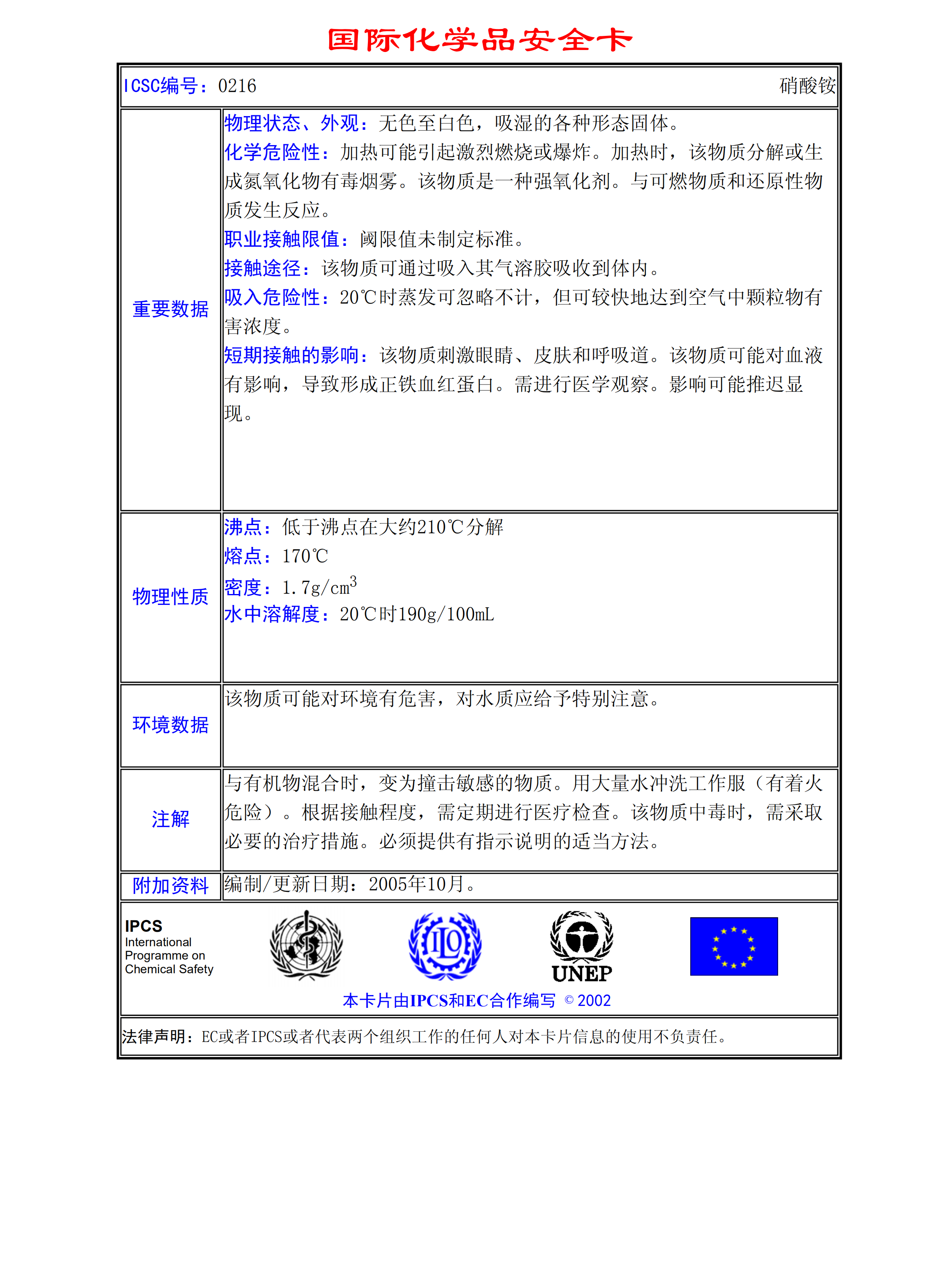 硝酸銨MSDS