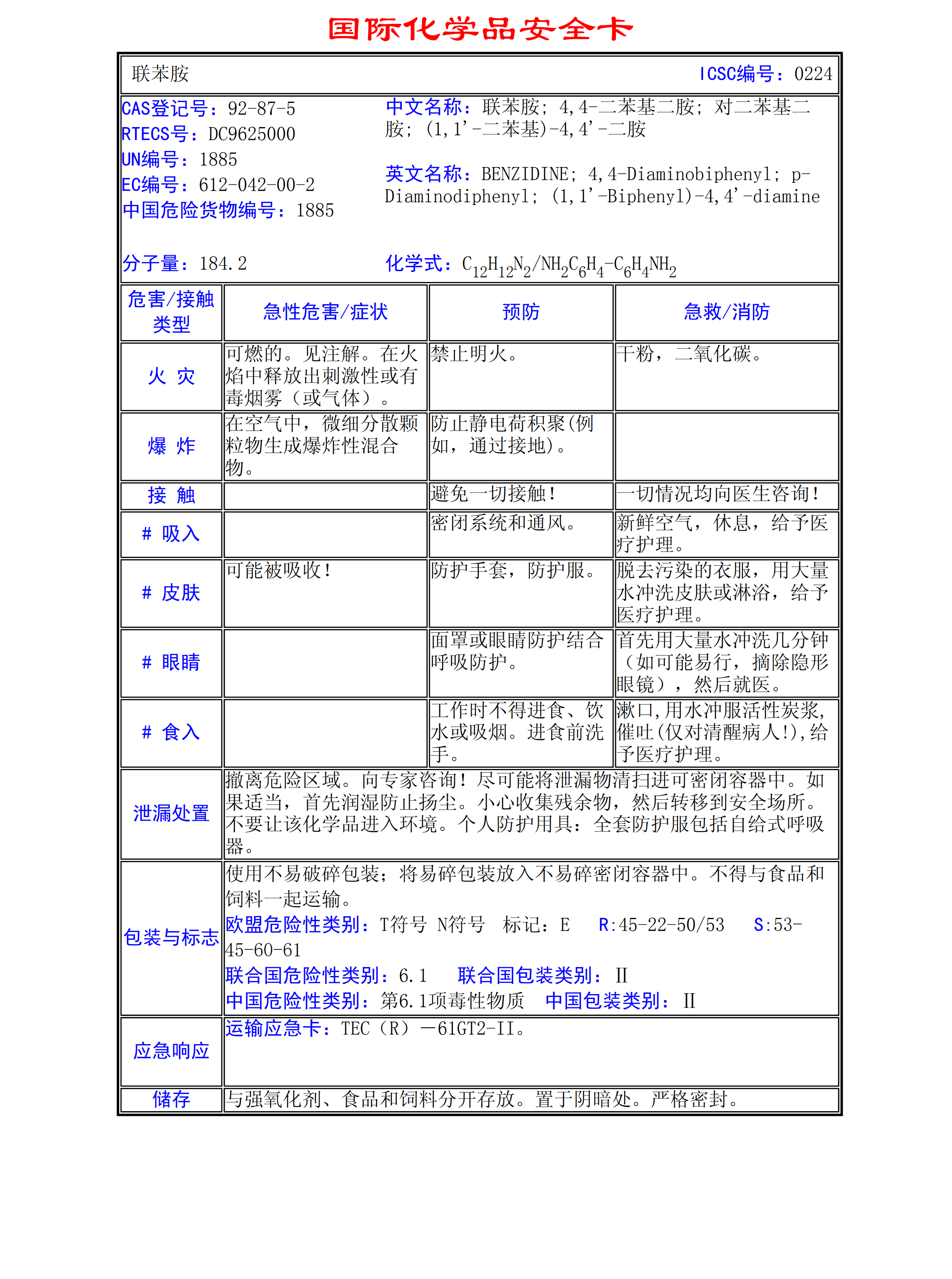 聯(lián)苯胺MSDS