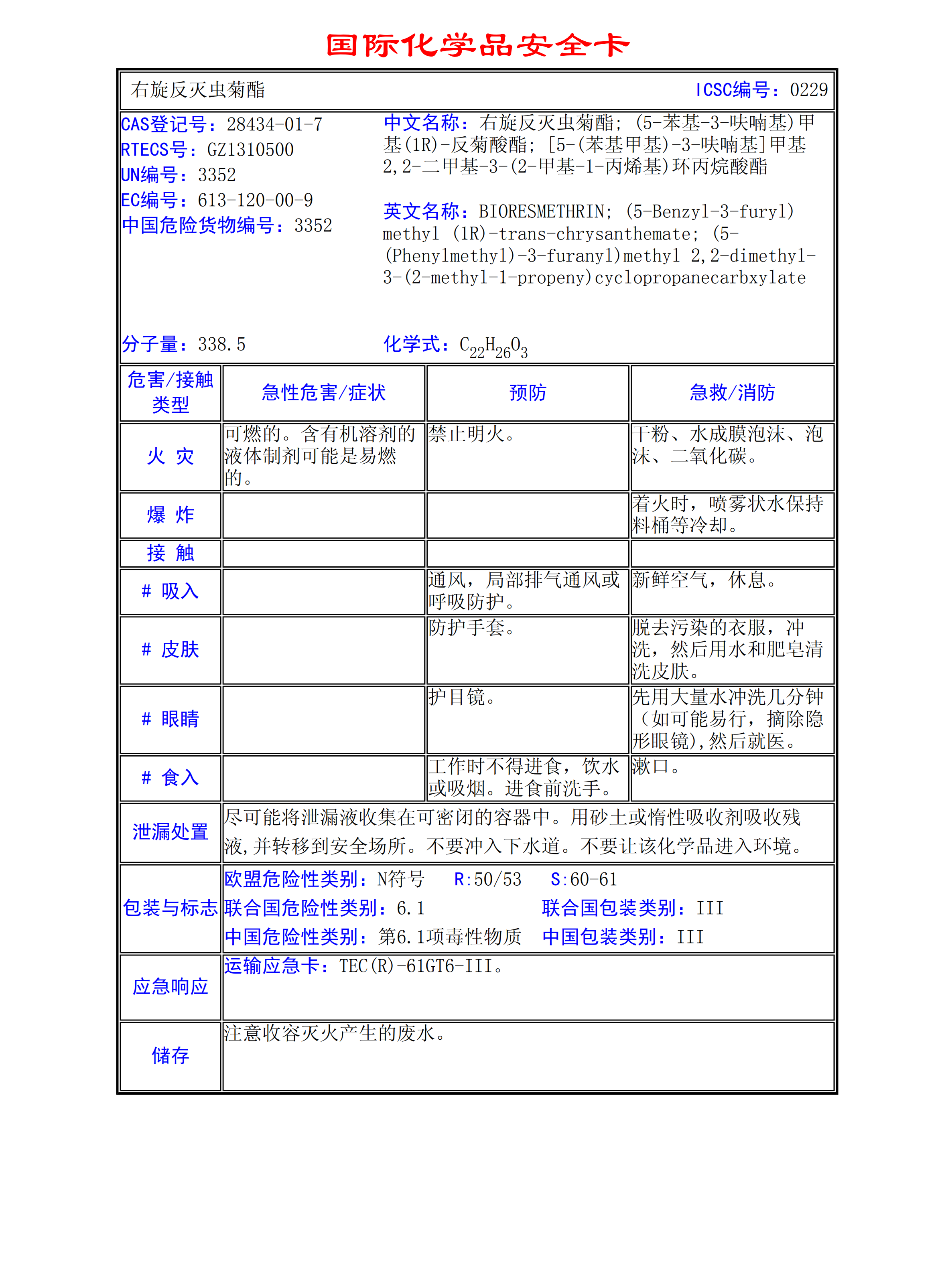 右旋反丙烯除蟲菊MSDS