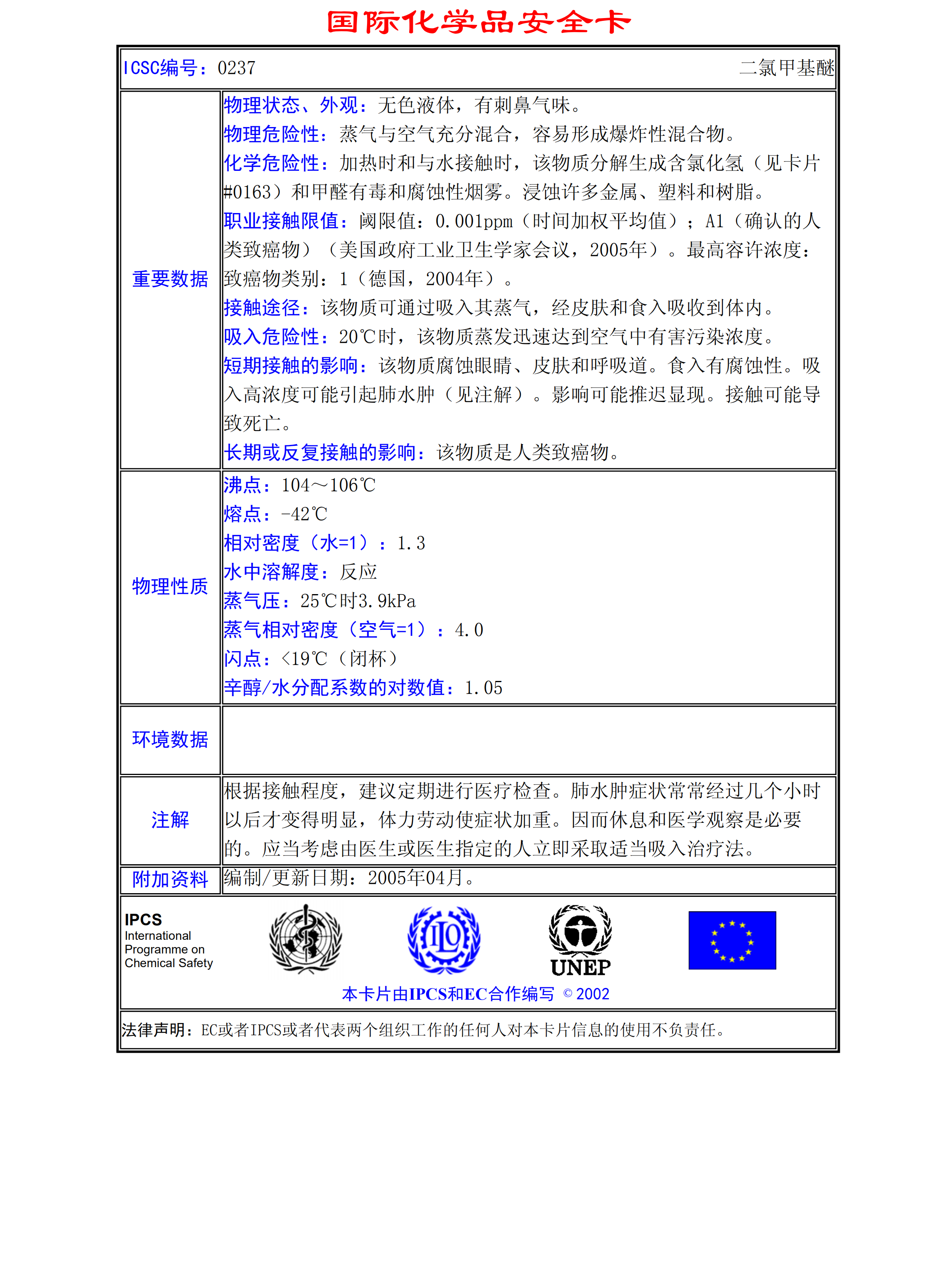 二氯甲基醚MSDS