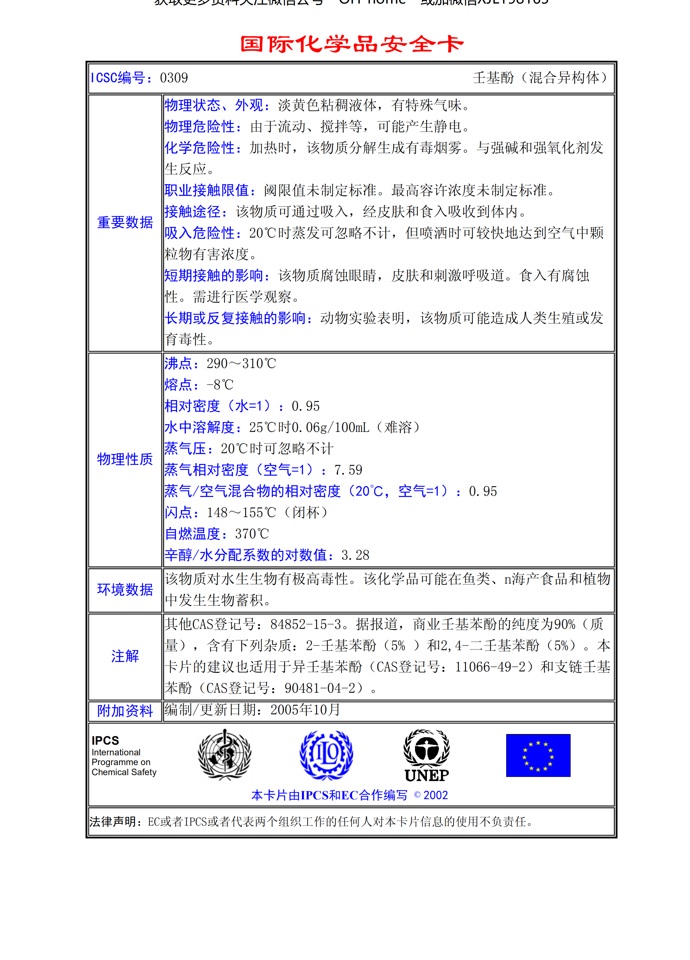 壬基酚(混合異構(gòu)體)MSDS