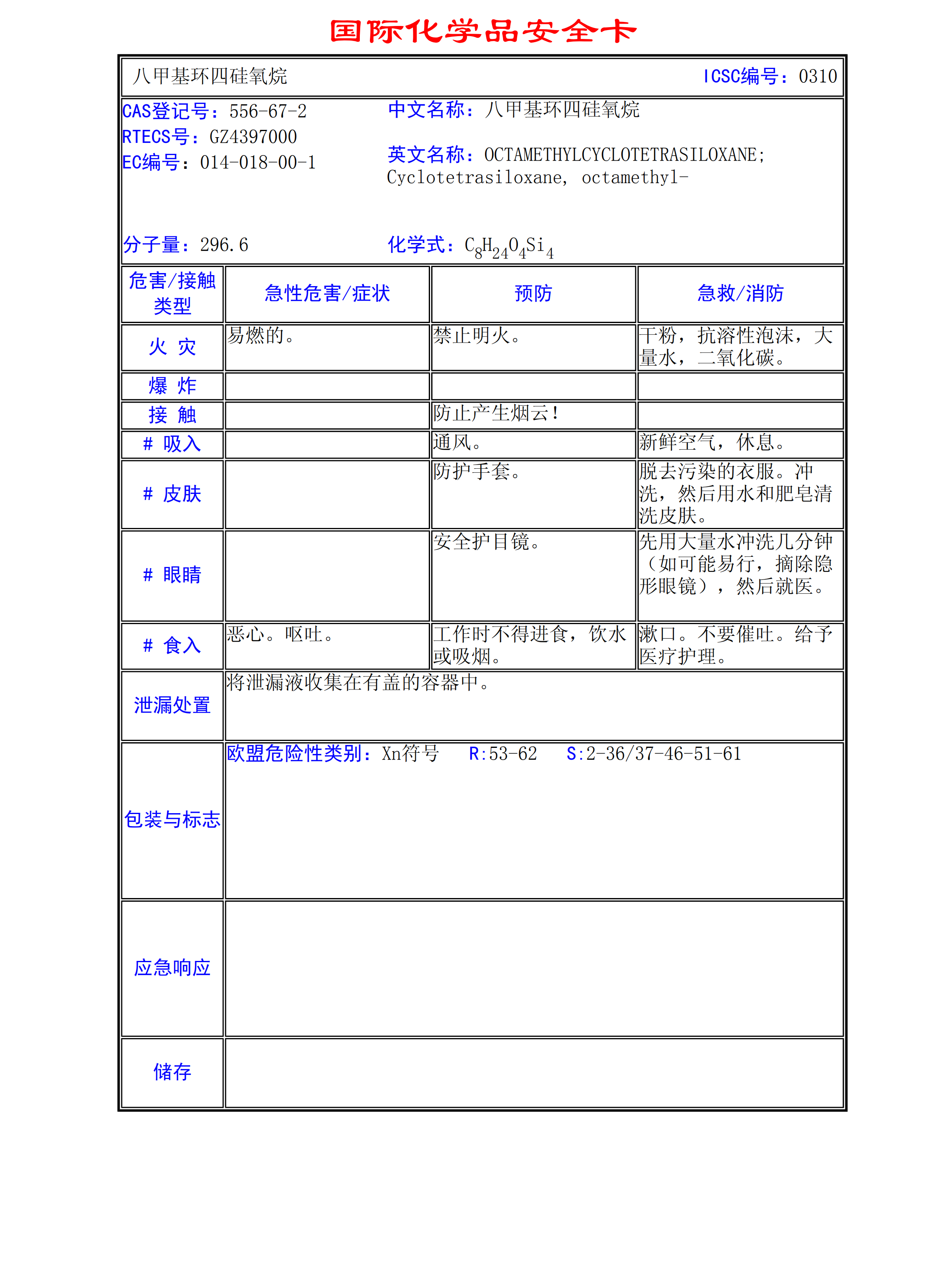 八甲基環(huán)四硅氧烷MSDS