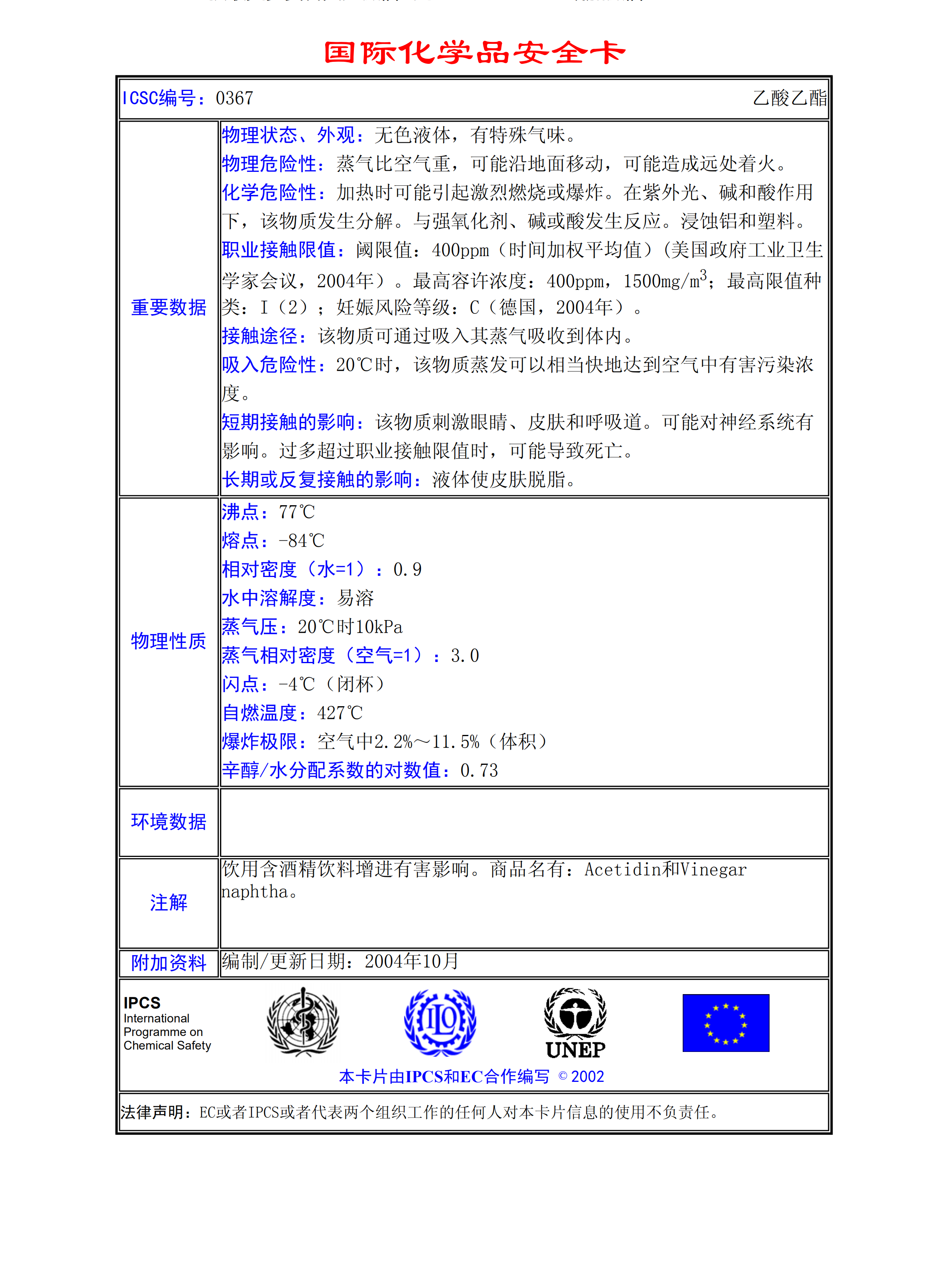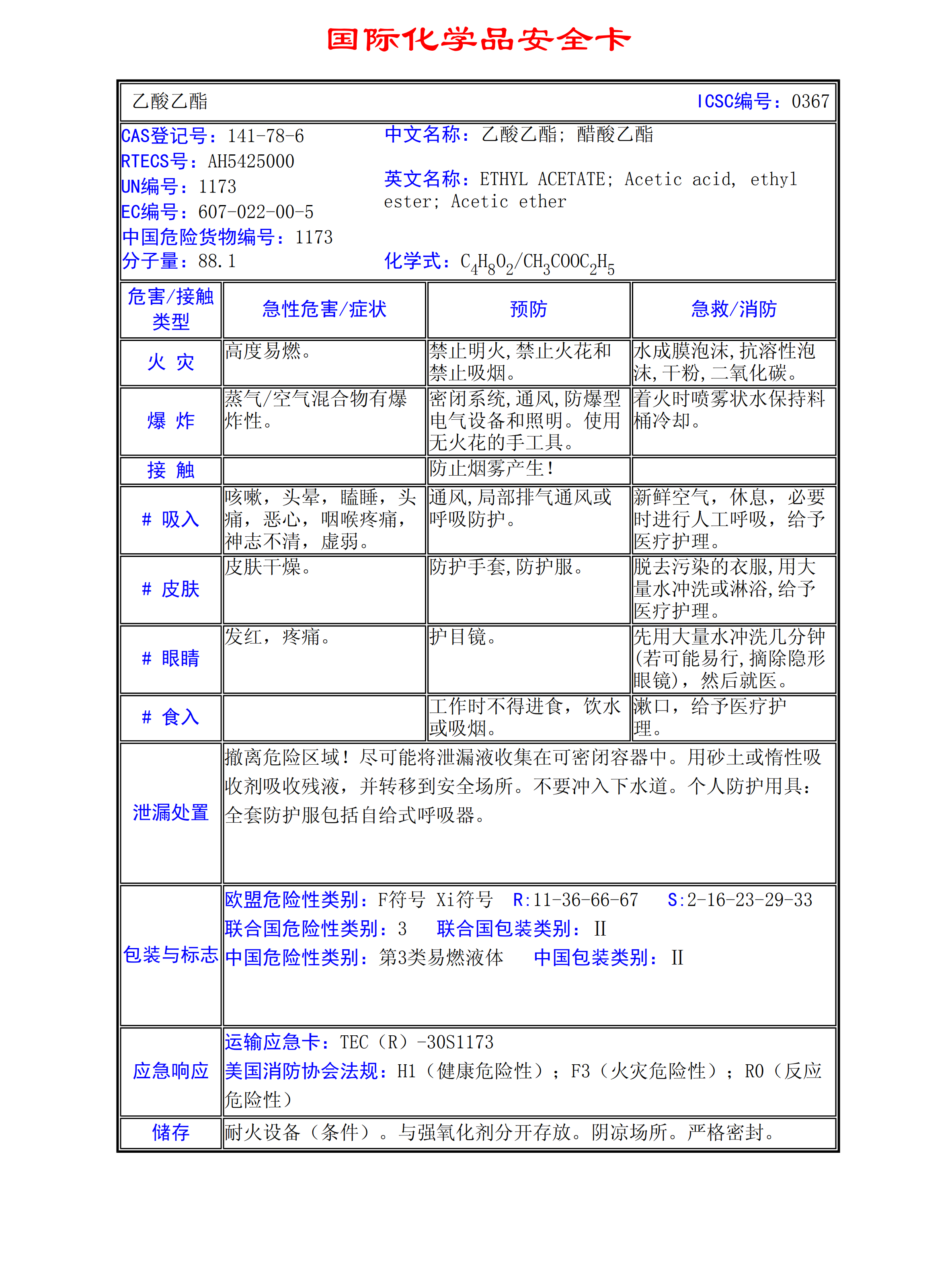 乙酸乙酯MSDS