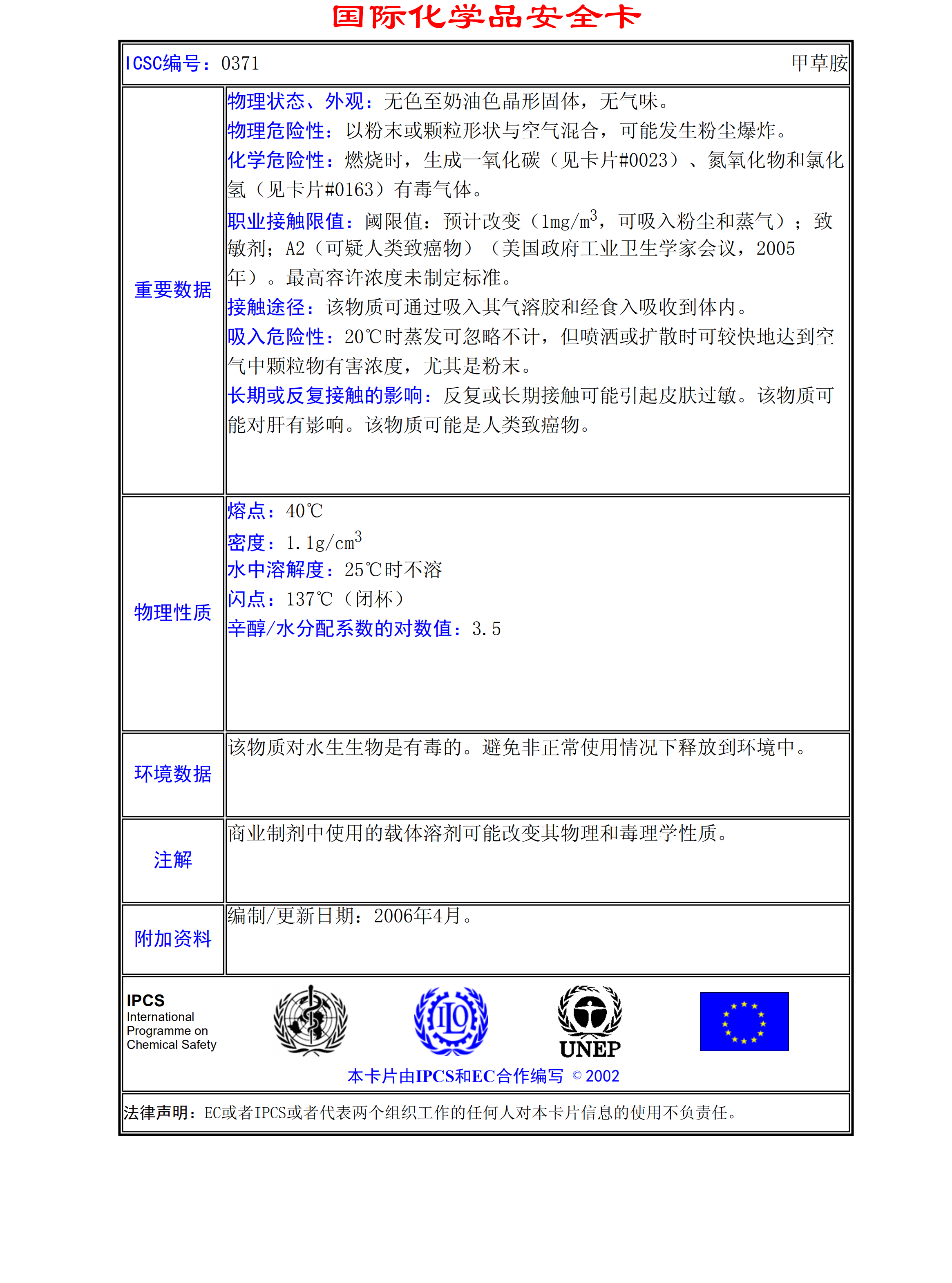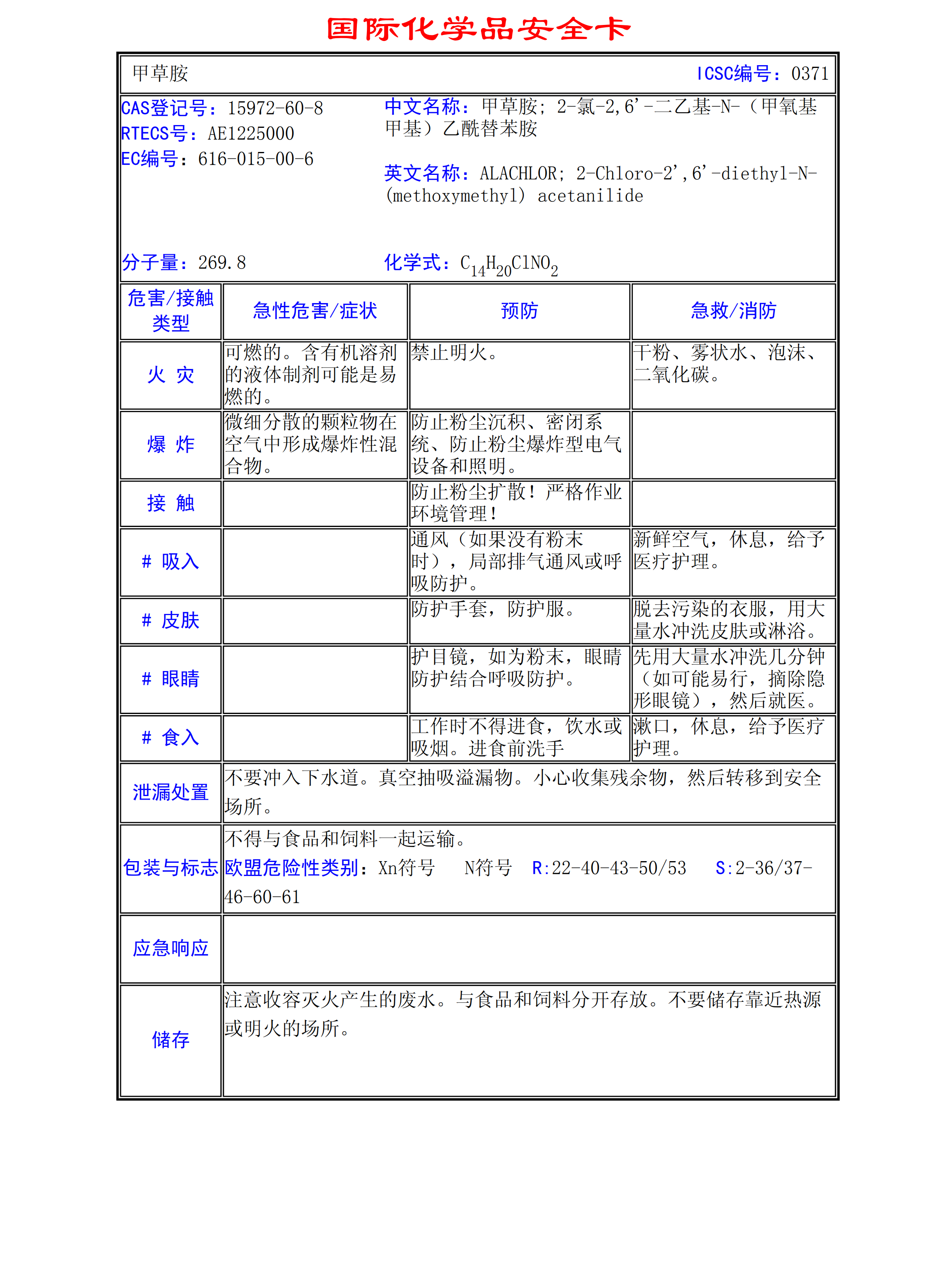 甲草胺MSDS