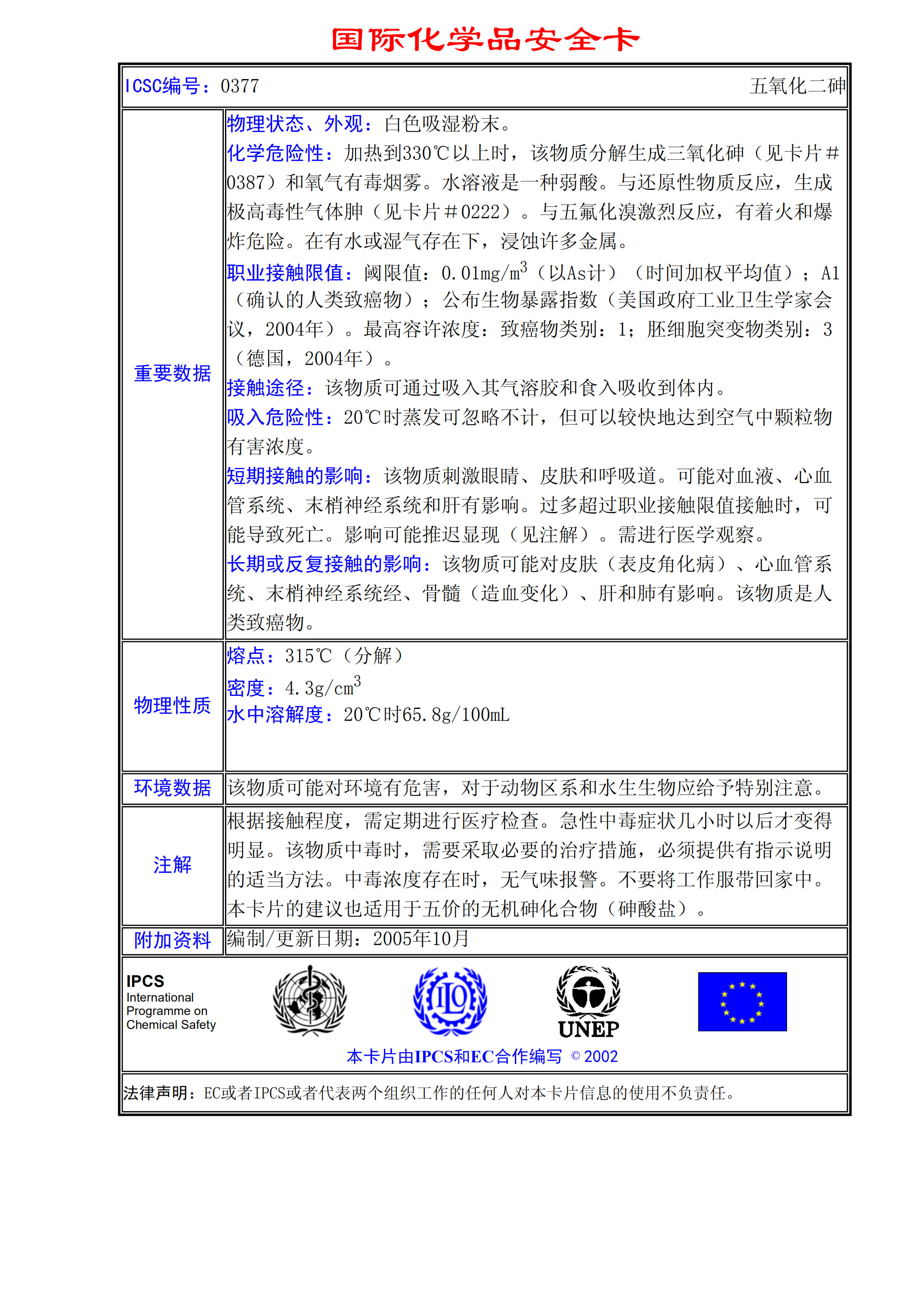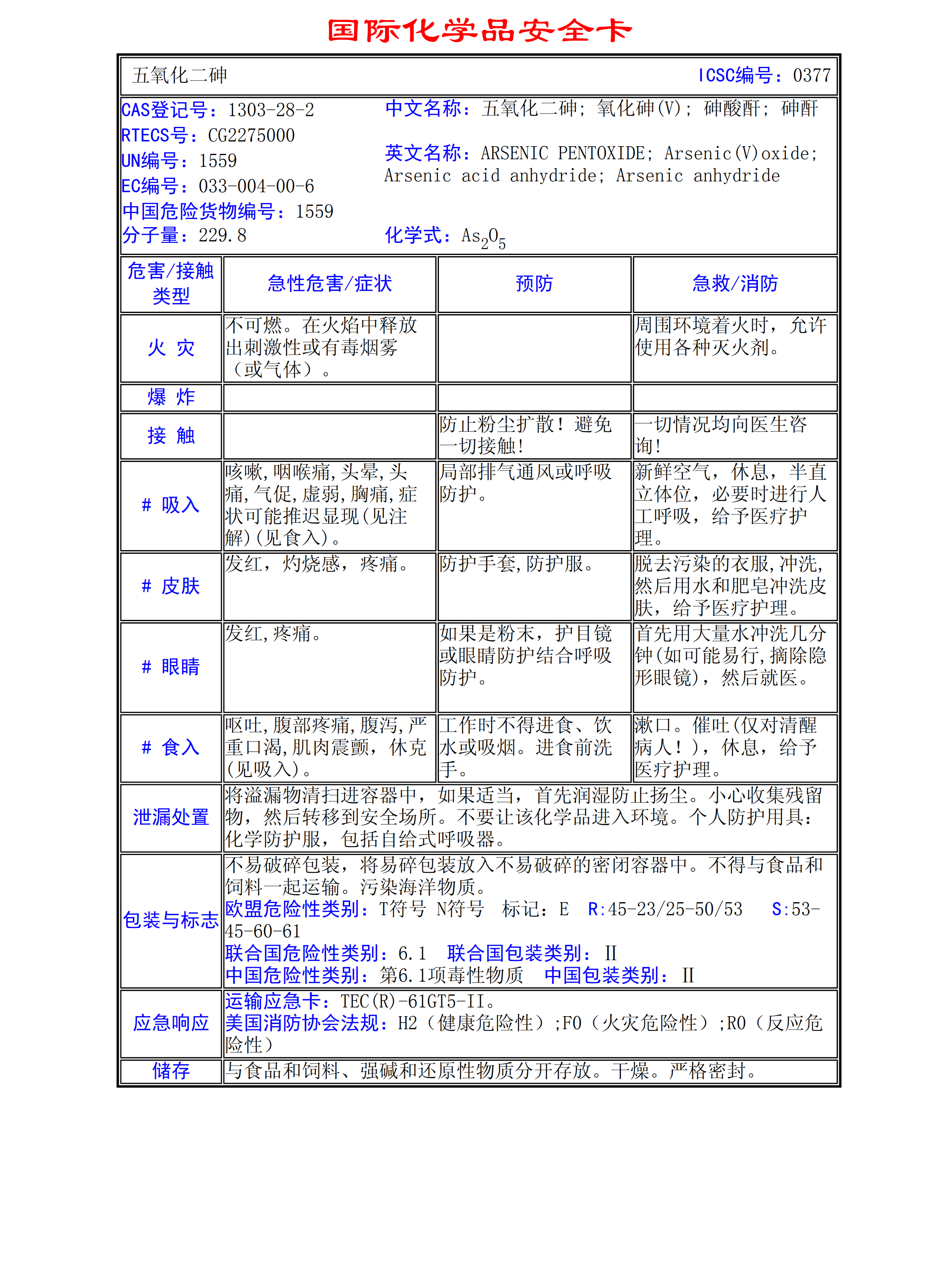 五氧化二砷MSDS