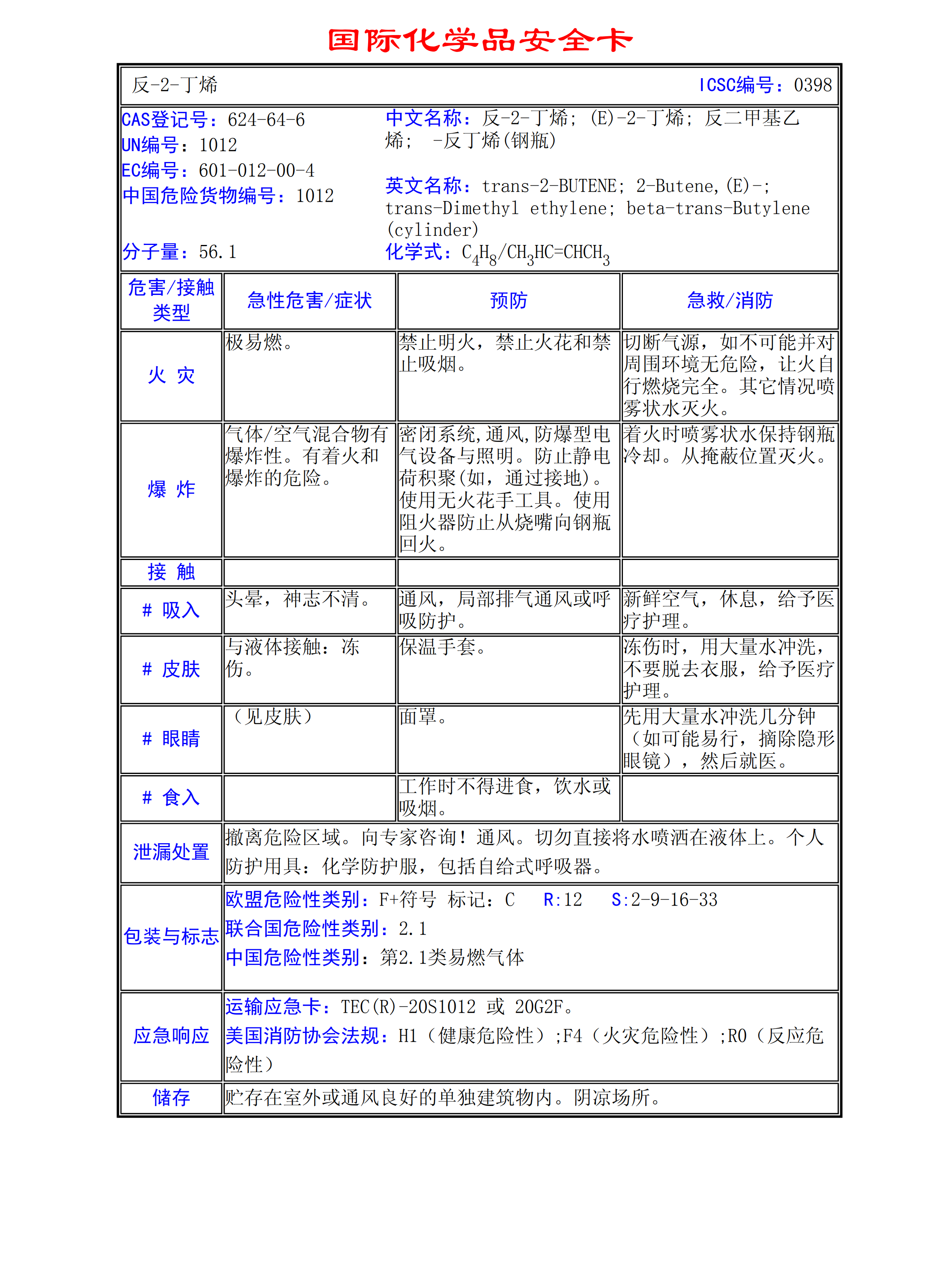 反-2-丁烯MSDS