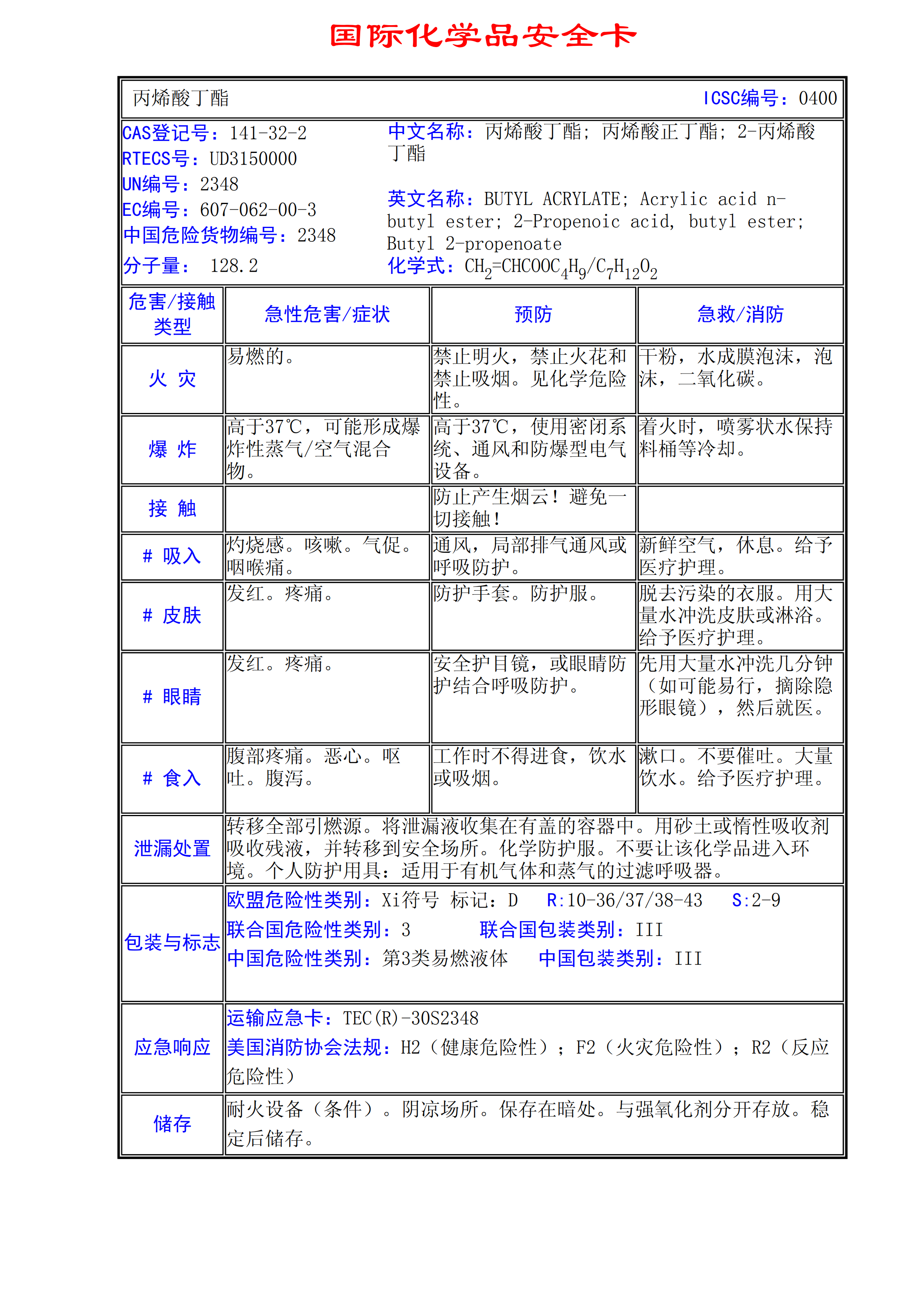丙烯酸丁酯MSDS