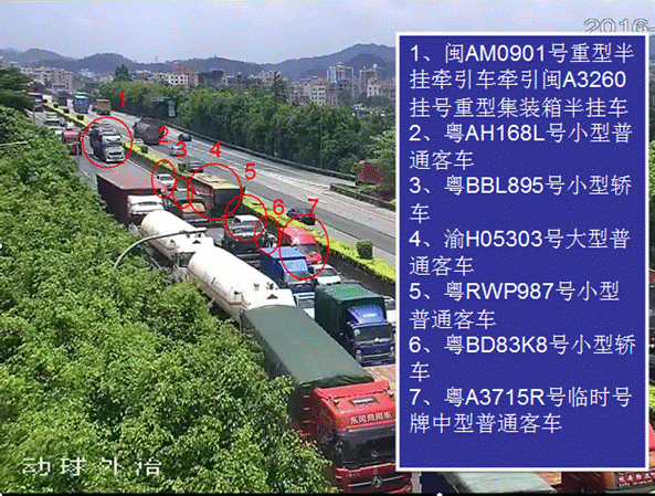 事故發(fā)生前,前方發(fā)生一起輕微交通事故,致使同向3條車道行駛緩慢。