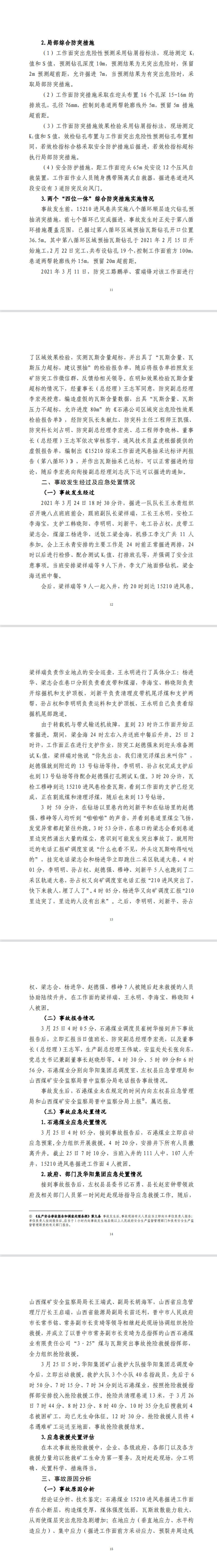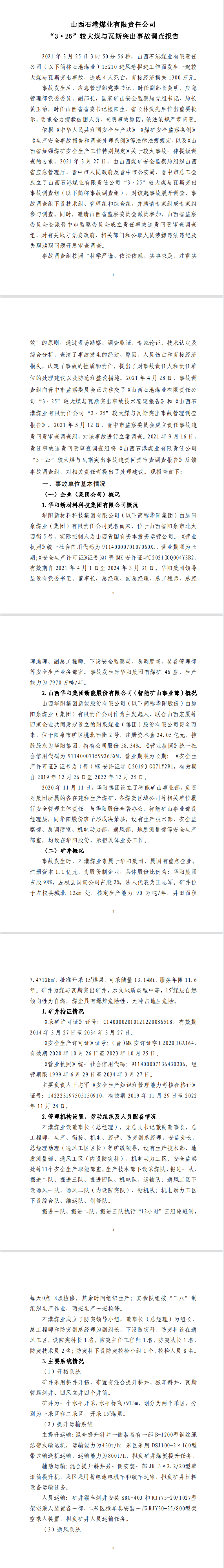 2021年3月25日,山西華陽集團(tuán)石港煤業(yè)有限公司(以下簡稱石港煤業(yè))15210進(jìn)風(fēng)巷掘進(jìn)工作面發(fā)生煤與瓦斯突出事故,突出煤(矸)量為244t、瓦斯量為22882m3,造成4人死亡,直接經(jīng)濟(jì)損失1300萬元,事故后遲報(bào)。
