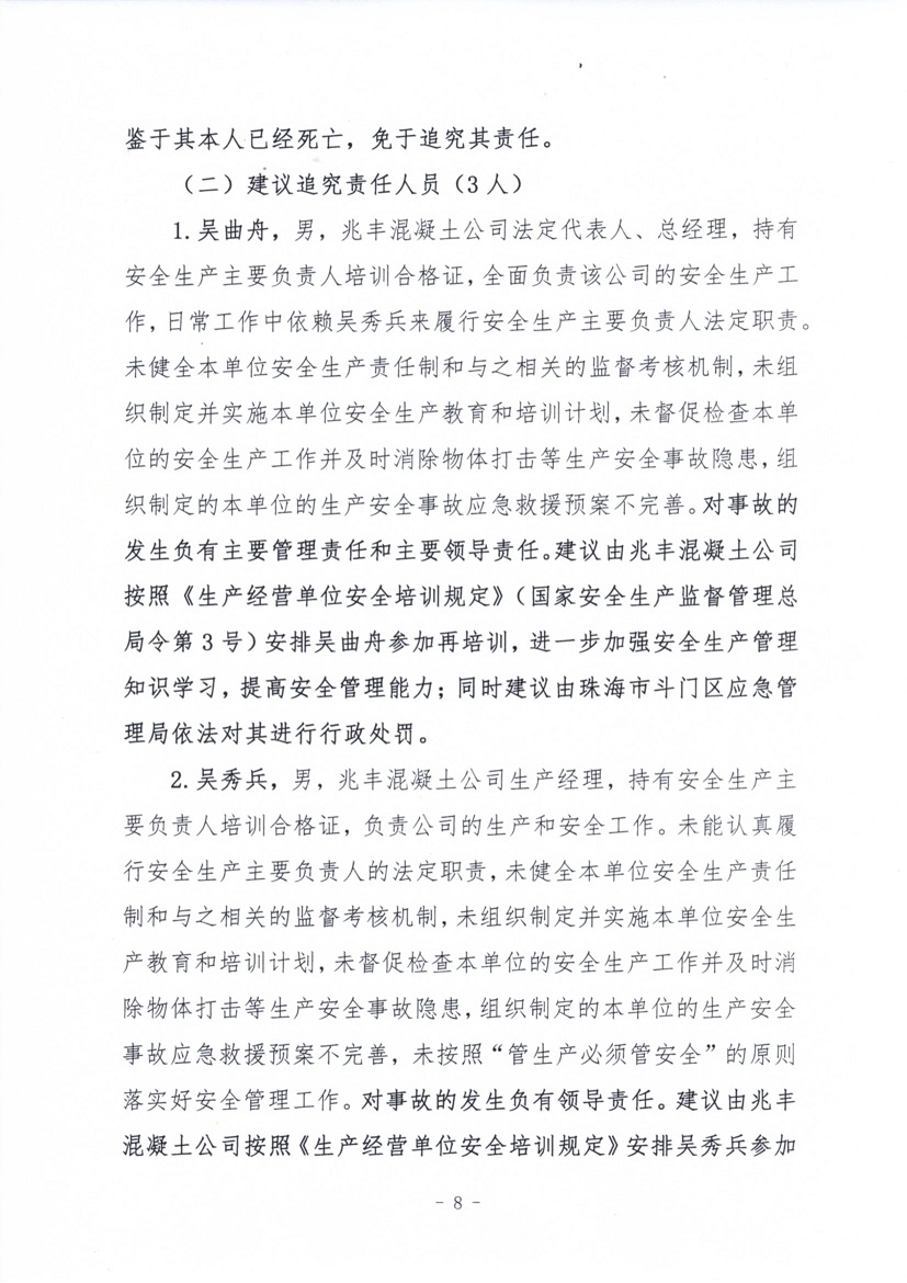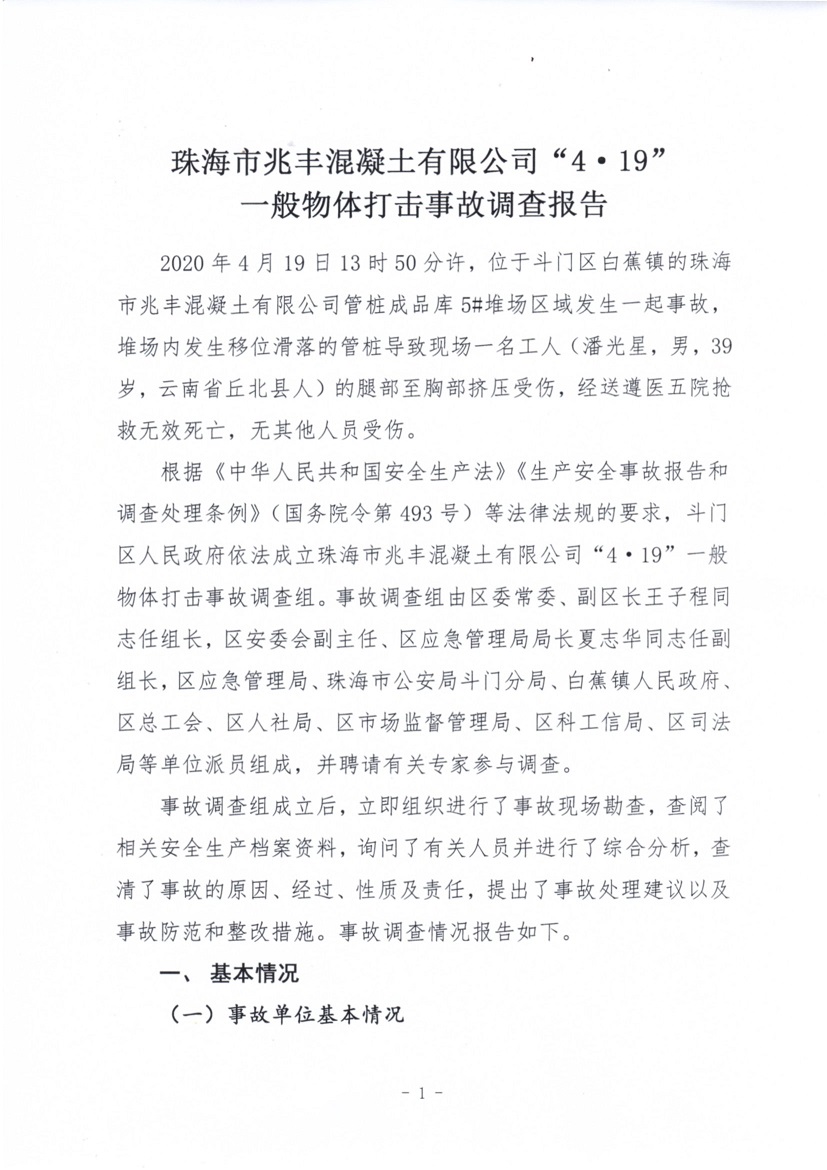 珠海市兆豐混凝土有限公司“4·19”一般物體打擊事故調(diào)查報(bào)告