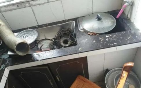 趕緊跑進(jìn)廚房查看,發(fā)現(xiàn)灶上的高壓鍋發(fā)生爆炸。廚房里的灶臺、櫥柜、排煙管皆被震碎,現(xiàn)場一片狼藉,