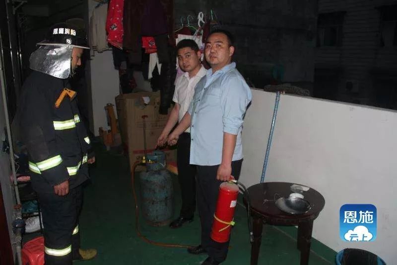 4月8日18時許,恩施市土橋壩老街一民房四樓張某在做飯時因液化氣泄漏起火,火苗迅速竄上灶臺,眼看火勢越來越大,慌張的張某手足無措,大聲呼喊。