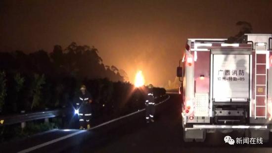 昨日凌晨1點(diǎn)左右,在蘭海高速公路北海往南寧方向欽州路段發(fā)生了一起兩車追尾的事故,事故導(dǎo)致將近20噸的液化天然氣發(fā)生泄露,現(xiàn)場火光沖天,情況危急。